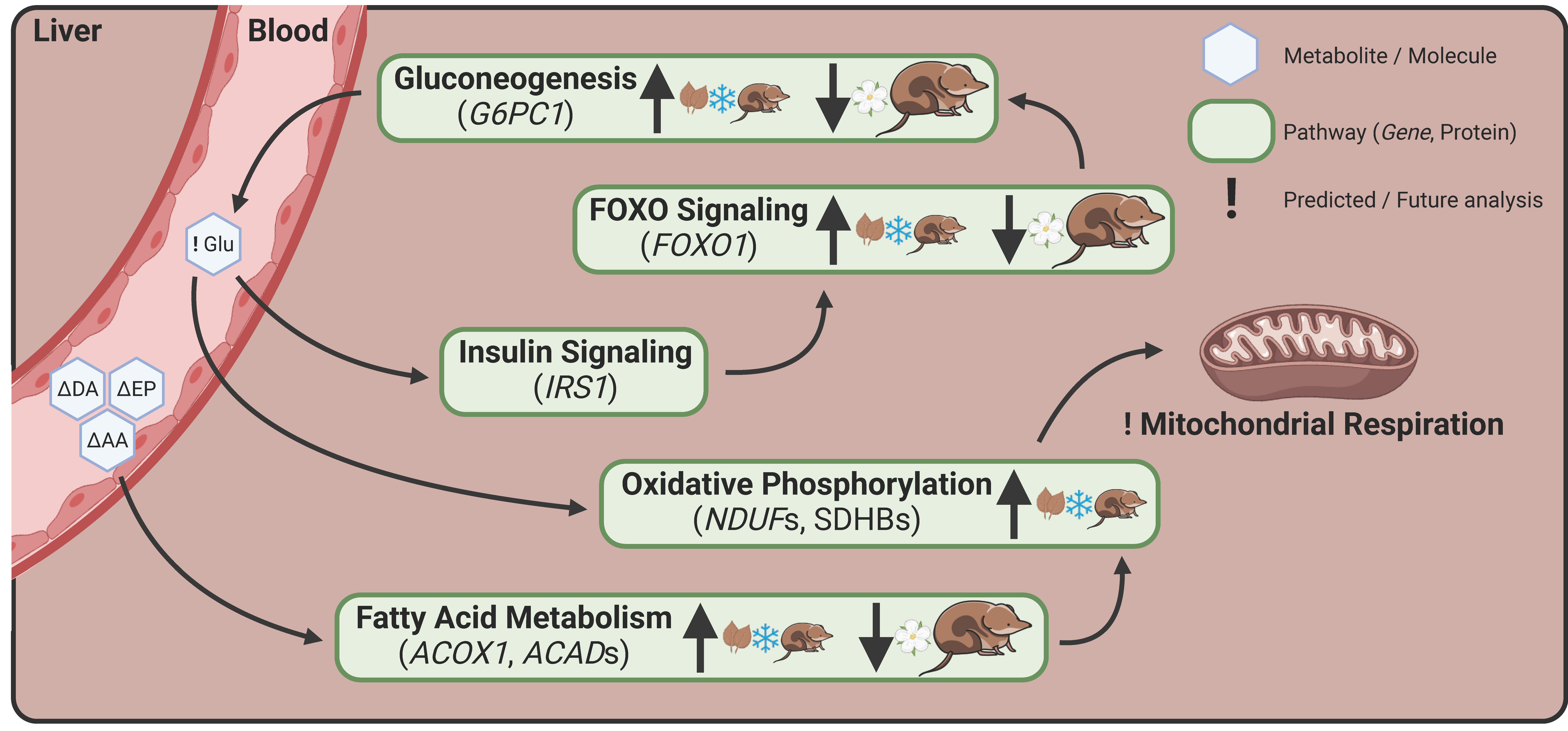 By analyzing metabolites, RNA transcripts, and proteins across seasons, the HFSP researchers uncovered molecular changes unlike those of hibernators. They found decreases in common polyunsaturated fatty acids, such as docosahexaenoic acid, during seasonal size change. Instead of conserving and gradually using fat like hibernators, shrews run on all cylinders by increasing fat consumption and sugar use during winter, rapidly burning through their fat stores and leaving less fat circulating in the blood. This is how these tiny mammals avoid starvation and remain active despite a reduced body size and frigid temperatures.