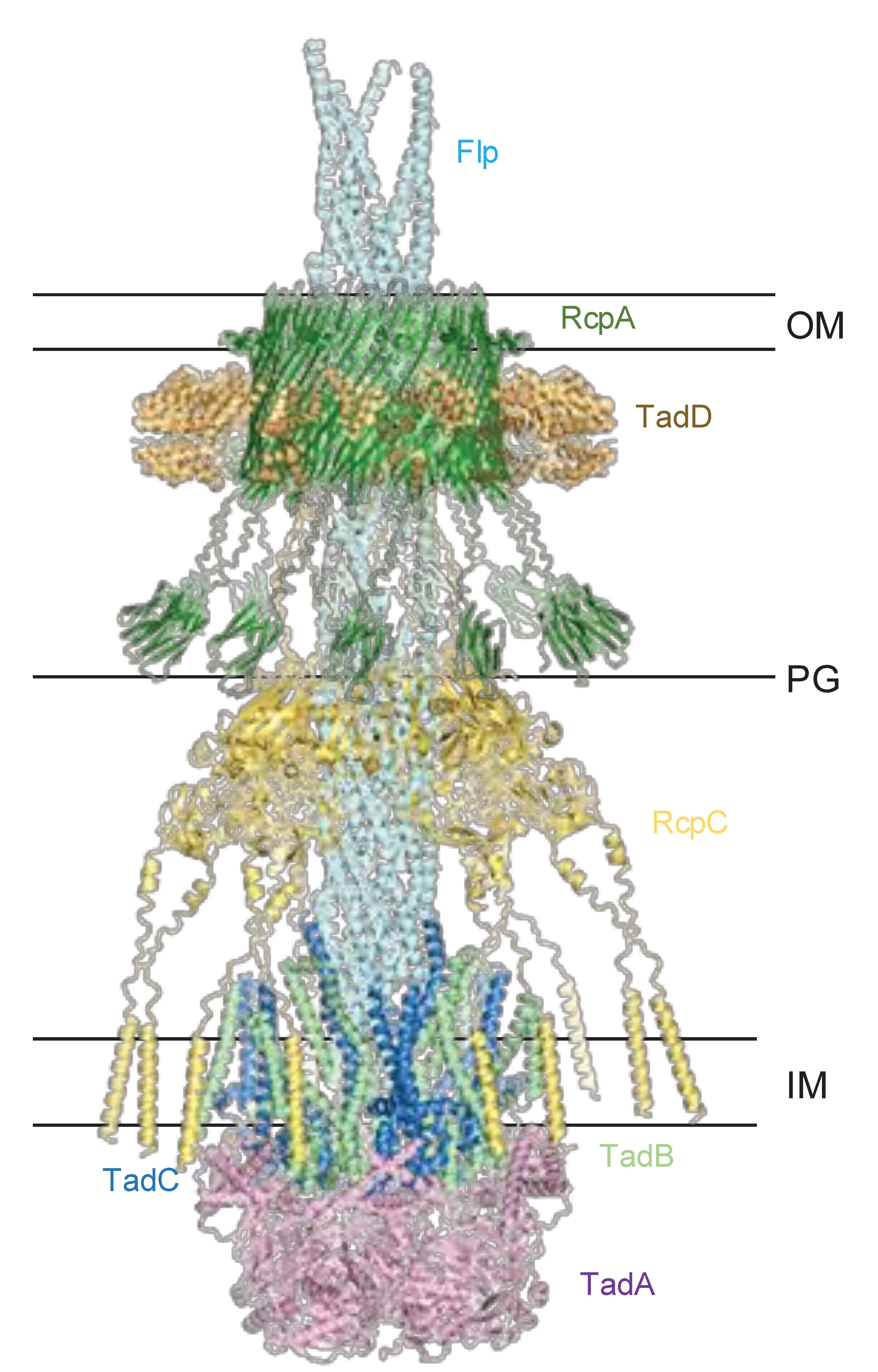 P. aeruginosa possesses Tad pili, the thin, sticky filaments on its surface that help it adhere to surfaces and form antibiotic-resistant biofilms. Tad pili are also found in many other biofilm-forming bacteria, however until now, how these pili traverse the bacterial envelope and assemble at the cell surface was not known.